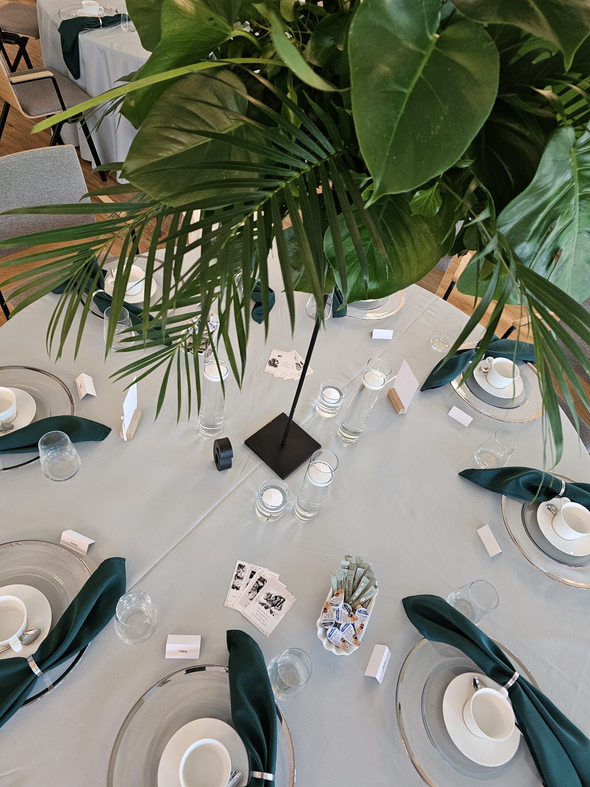 Bodenlang bei Tischen mit einem Durchmesser von 180cm.