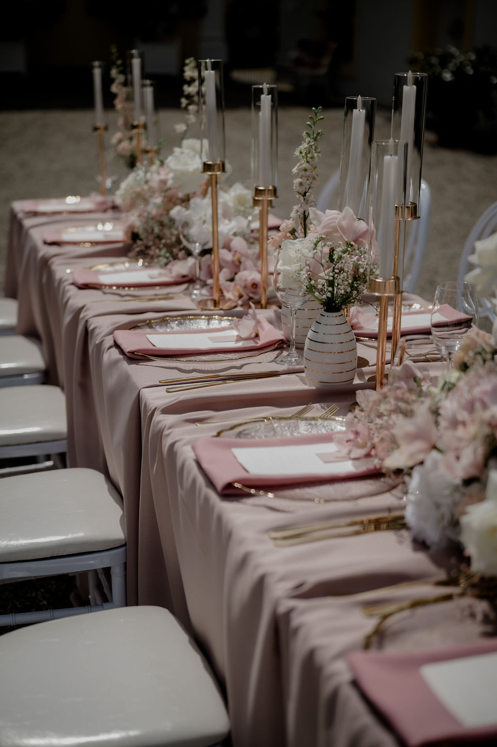Bodenlang bei Tischen mit einem Durchmesser von 180cm.